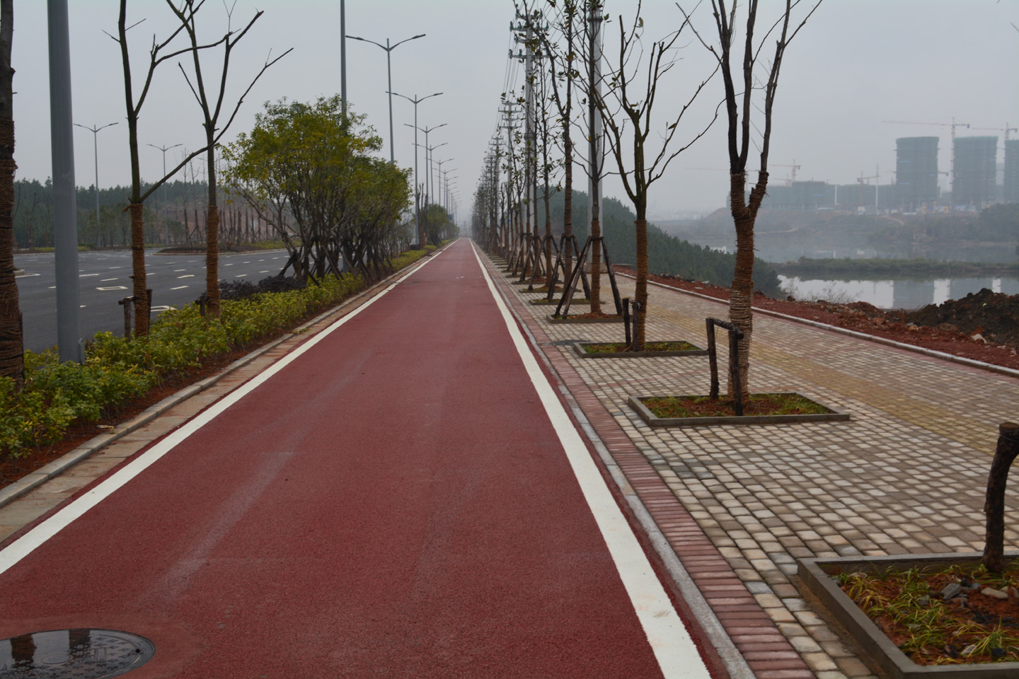 涇縣桃花潭東路延伸段工程彩色瀝青人行道和行道樹