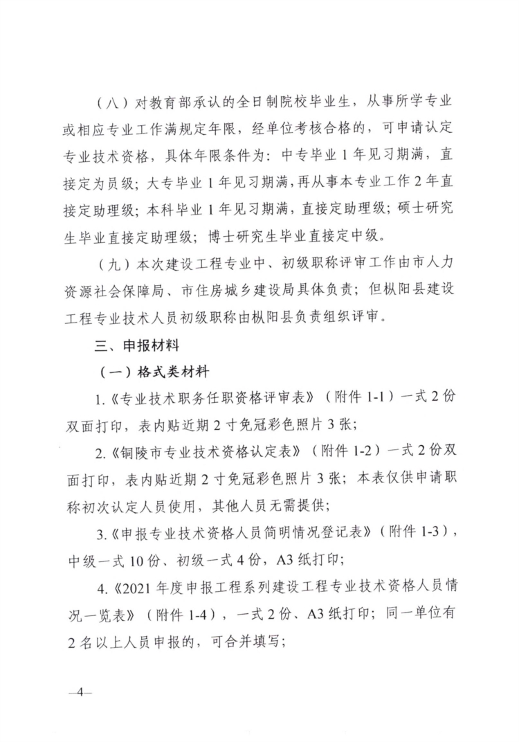 關于開展銅陵市2021年度建設工程中初級職稱評審工作的通知