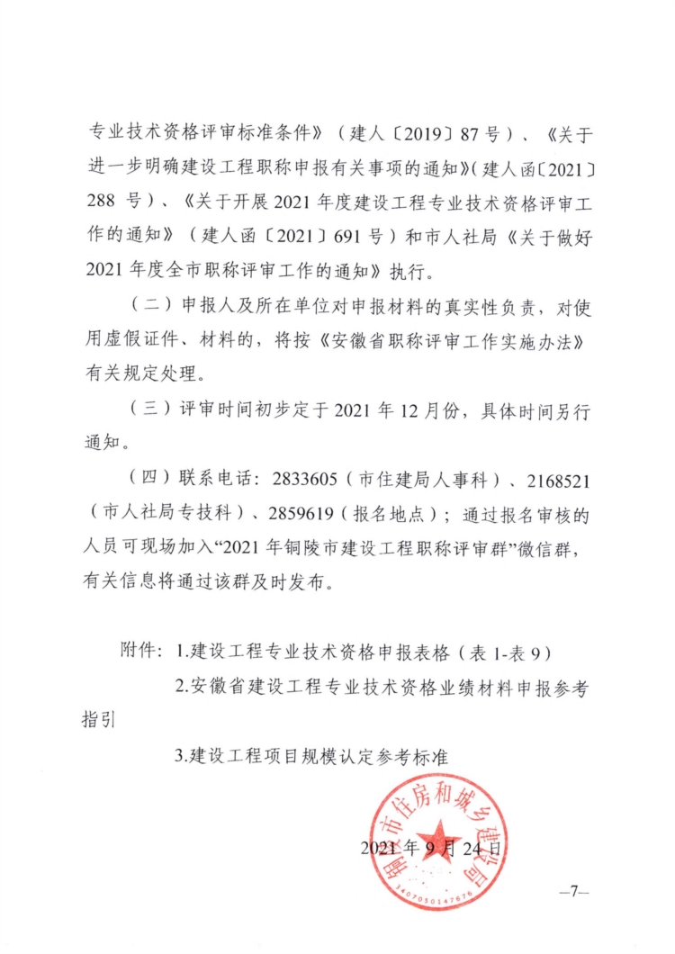 關(guān)于開(kāi)展銅陵市2021年度建設(shè)工程中初級(jí)職稱評(píng)審工作的通知